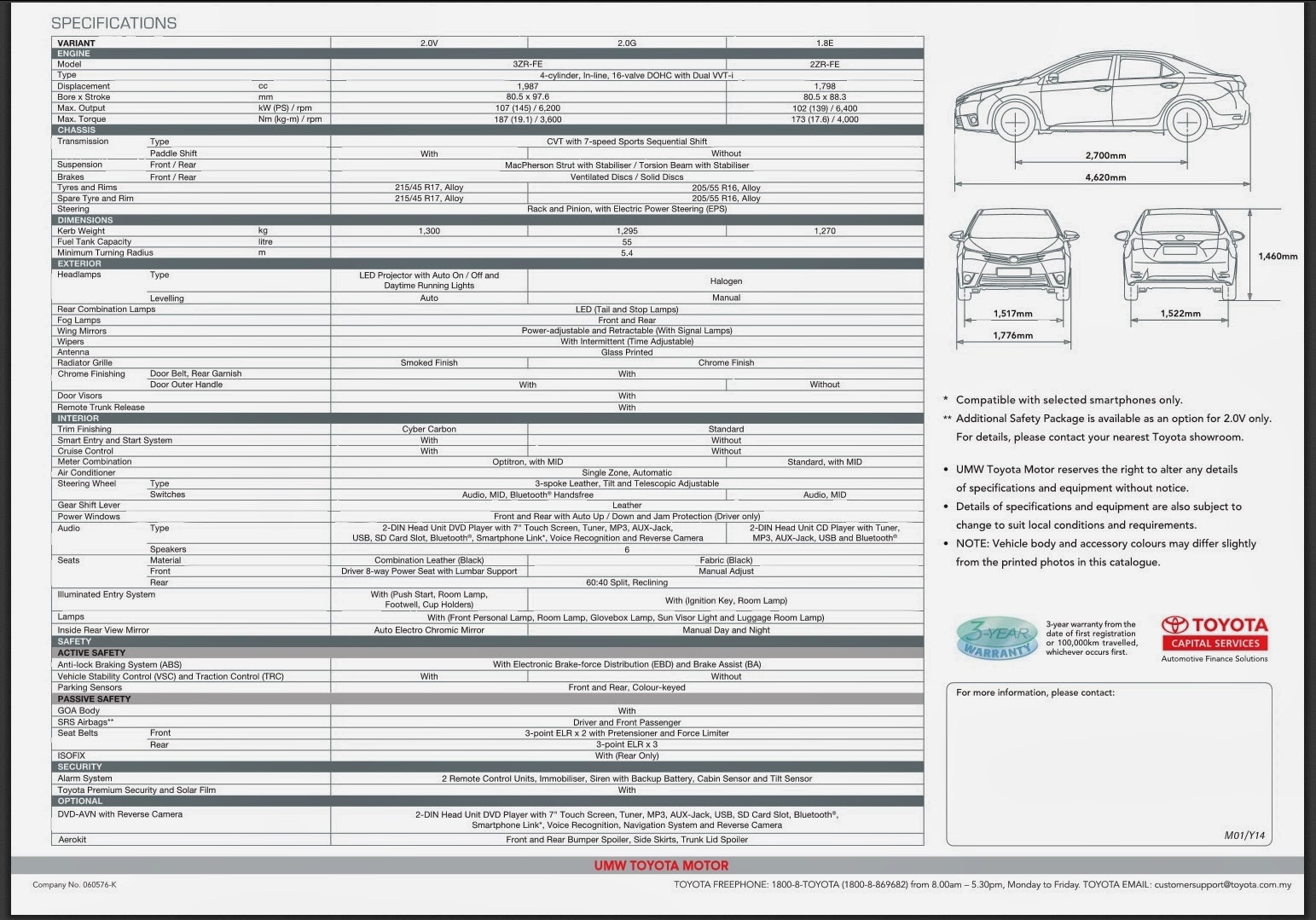 Spesifikasi Corolla Altis: Sila Klik pada imej (jadual) dibawah ini untuk melihat dengan lebih jelas!